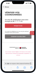 Cliquez sur « Envoyer le SMS/email » pour recevoir un code unique sur appareil.