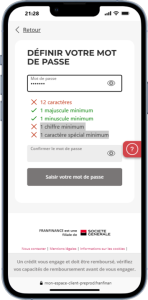 A réception du code, saisissez Saisissez votre nouveau mot de passe en respectant le format demandé.